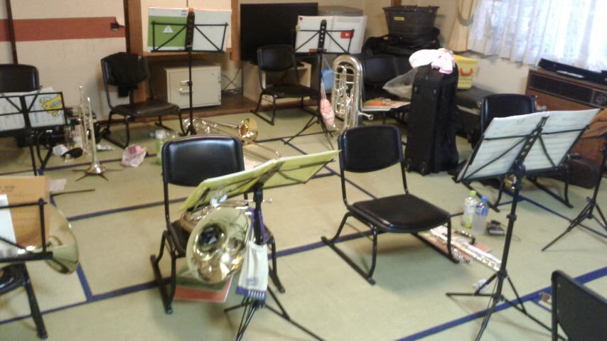 いよいよ5日後に迫った演奏会。1泊2日の強化合宿も終え、万全の状態・・・と言いたいところだけど、社会人バンドの宿命で、全員が揃うのは当日のみ、ということになります。練習回数が少ない人は、たいていデモテープなどを聞き込んでるから、曲を知っているという点では心配無い人も多いですが、本番はデモに合わせて吹くわけではないから、やっぱりお互いに不安。