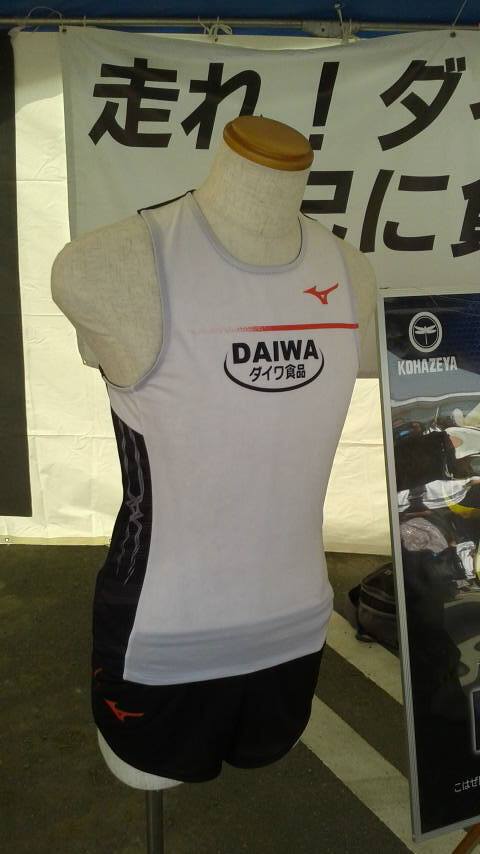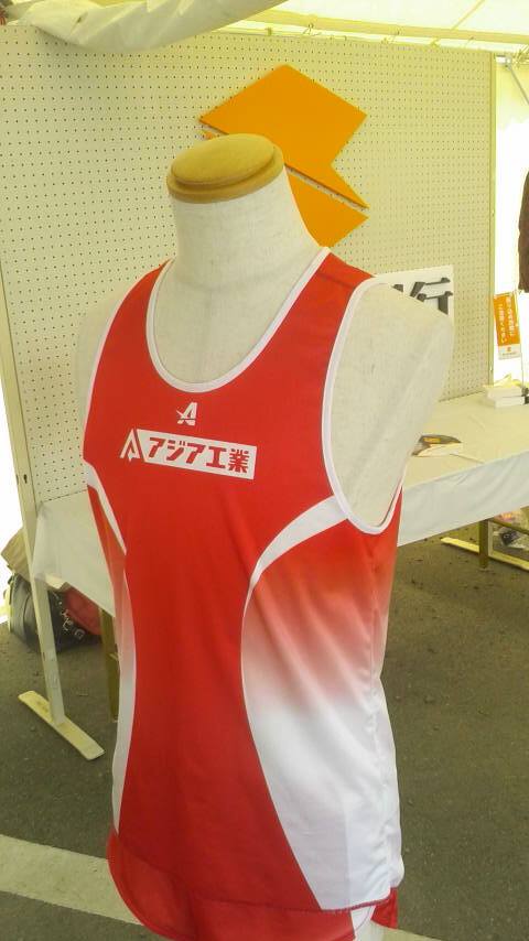 中を覗いてみると、あの「ダイワ食品」と「アジア工業」のユニフォームが!そして、なななんと、ヤスさんと埼玉中央銀行の支店長が!このお二人に挟まれて写真を撮ってもらうために、長蛇の列ができてました。陸王が放映された直後の大会ということで、こういう状況はある程度予想していましたので、私のとるべき行動はただ一つ!