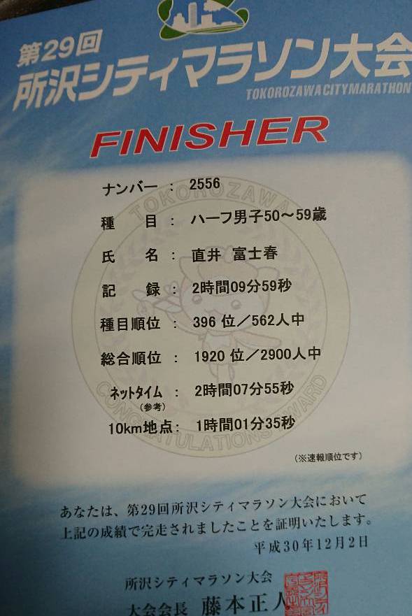 12月 2日 所沢シティマラソン完走