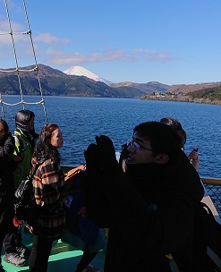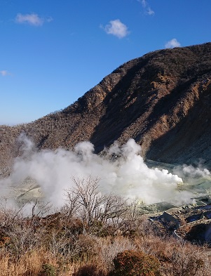 こういう日は、きっと下り6区も波乱含みだろうから、もういいや。天気が良くて富士山がきれいに見えるから、ここから先は普通の箱根観光に切り替えてることにしました。最初の写真は海賊船から見た富士山。桃源台からはロープウェイで大涌谷へ。