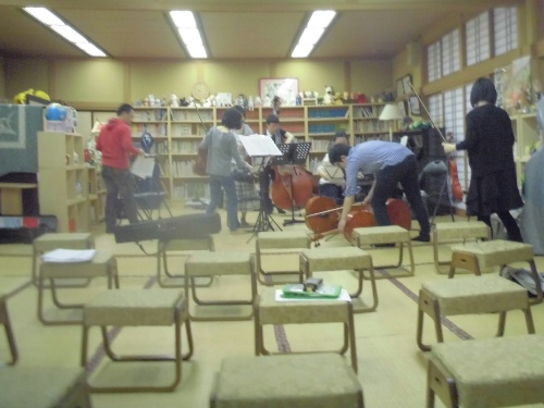翌日は近所の「大念寺」に移動して、9時からリハーサル、10時半から本番という流れでした。お客さんはご近所の方々で、この「大槌キャラバン」も毎年恒例になっているようです。