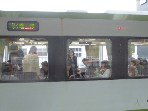 翌朝は、高知駅まで路面電車で。外は33度くらいあるのに、なんと窓全開で冷房ナシ。気に入った!冷房ガンガンに効かせてほしい人はバス、私みたいに冷房嫌いな人は路面電車、という具合に棲み分けているのかも。