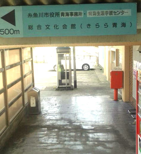 親不知付近の断崖絶壁ドライブの後、間もなく糸魚川というあたりで、青海駅入口を発見!ちょっと寄ってみよう。