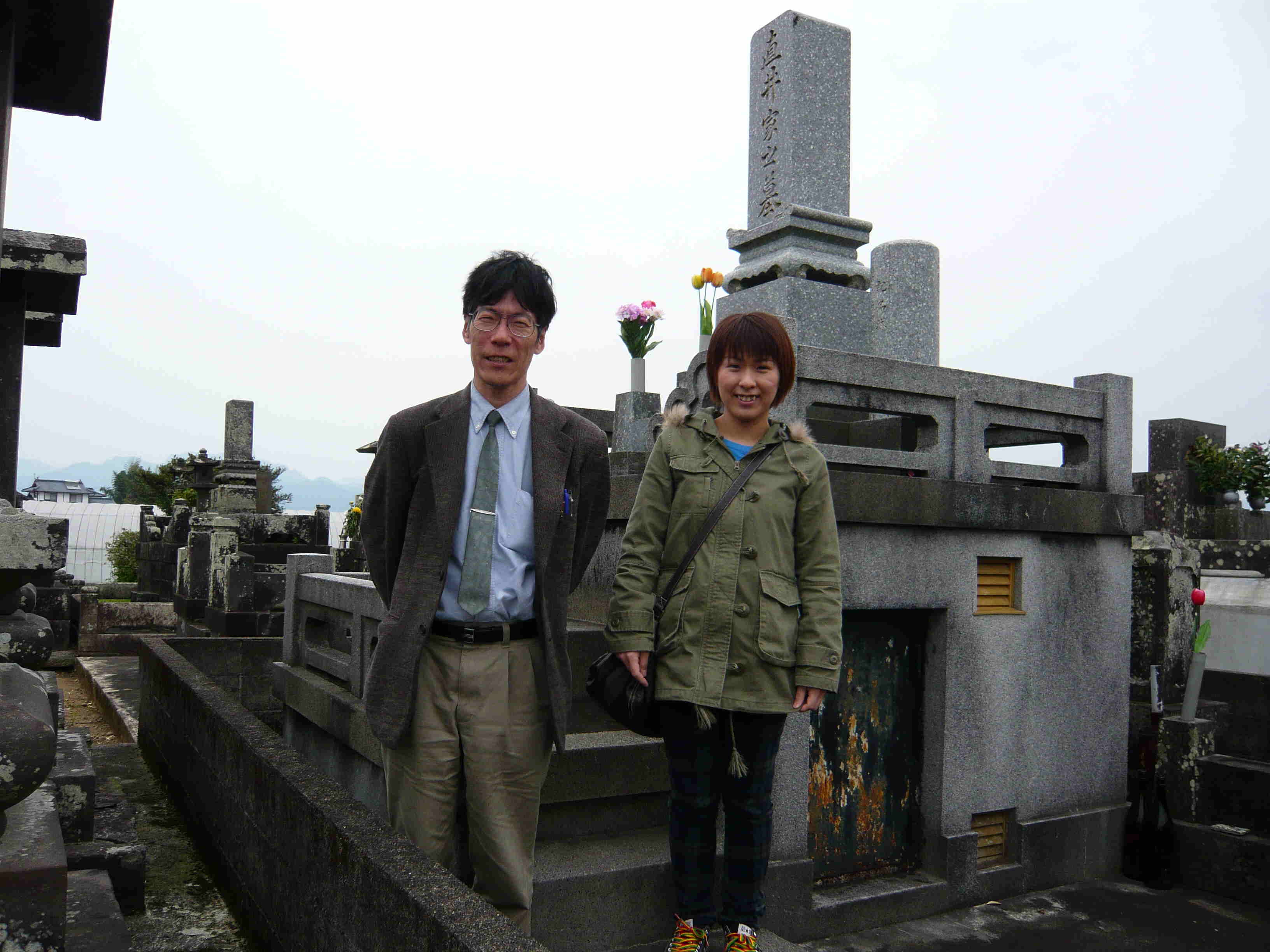 熊本県山鹿市にいるのは私の伯母さん。直井家先祖代々の墓がすぐ近くにある。私の父は少年期までこの地で過ごした後、東京に出てきて、生前にお墓を八王子に新築した。父の遺骨だけが八王子にあり、祖父より上は熊本・・・という状況なわけだ。熊本で生活した事がなく、今後もその予定が無いと思われる私や弦太は、熊本の方にお墓参りする機会はほとんど無くなるだろうから、じゃあどうするか・・・を決めて来い、というのが今回のミッションだ。どうするかって、お墓ごと全部東京に引っ越すのか、お寺に永代供養とかをお願いすればいいのか、見当もつかなかったが、いずれにしろ、祖父より上の代を切り捨ててしまうようで心苦しい。伯母さん宅に、昭和9年(75年前!)に取った戸籍謄本が残っていた。祖父の祖父は、文政12年生まれで明治29年没か・・・。なんか凄いな。会った事無いのに、私や弦太のDNAをくれた人々だと思うと、親近感が湧いて、失礼な事はできない。父は、地元部落の自治会のような所に、毎年「お志」を送って、お墓の管理を委託していたようだ。この日、たまたまその関係の方とお会いできて、いろいろお話も聞かせていただき、私なりに、祖先の気持ちを類推することができた。祖先は郷里を離れて引っ越す気は無いだろう。そして、子孫たちにとって熊本が見知らぬ地になるのは悲しいだろう。ならば結論は一つだ。父の遺志を継いで、熊本のお墓も維持する・・・これしかない。「弦太、お前の子供や孫にもこの場所教えとけ。10年に一度でもいいからお参りしろ」「うん、わかった」 直井家長男どうし打ち合わせ完了。