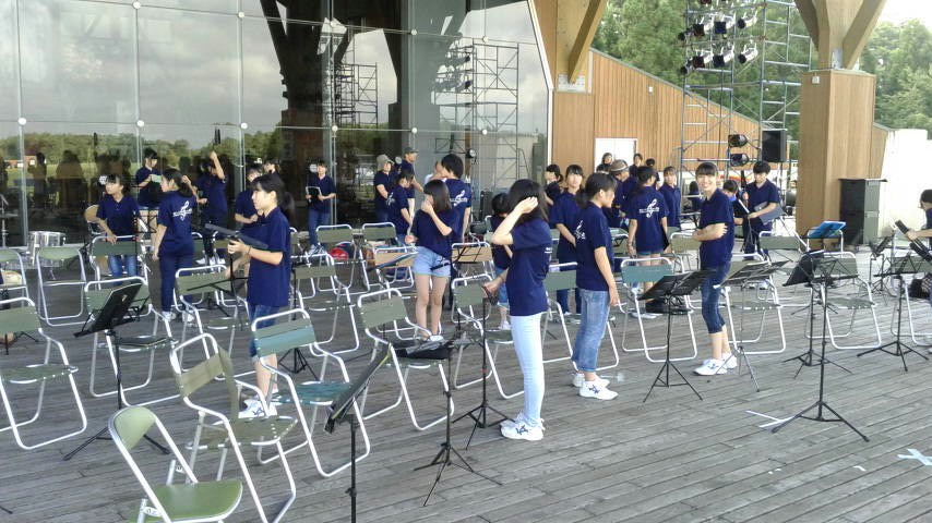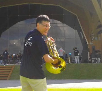 写真:当日準備中の大合同バンド。今回はホルン奏者として参加