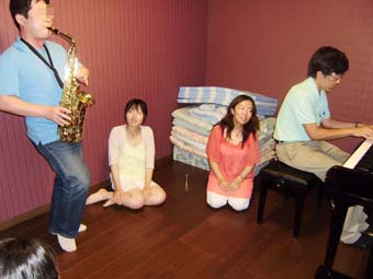 クラは各校2名ずつ、計6名の女の子。軽く自己紹介してから、前半はひたすら基礎練習の方法をレクチャー。後半は曲を題材にしながら、譜面の読み方(アーティキュレーションや、ジャズポップスに特有なセオリー等)をレクチャー。みんな熱心で飲み込みが早くて素晴らしかったな。でも私が一番ビックリしたのは、能登の中学生の多くが、東京ディズニーランドに行ったことがあるという事実だ。やはり日本は狭かった。