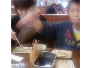 ←串カツ。弦太の食べ方が速すぎて、手がブレた。