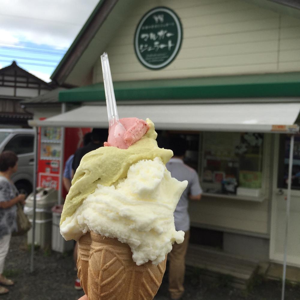 2台の車は国道を穴水方面に走り、ここも恒例だが「マルガージェラート」(写真)に立ち寄る。いつものように、他県ナンバーの車でいっぱい。私はどういう訳か、毎年「チョコミント」のシングルを注文していることに、Gんたの指摘で気づいたが、まあどうでもいい。さらに南下すると、のと鉄道と国道が並行する。西岸駅に寄ると、都内組は感動しているようだが、我々西多摩組はそうでもない。武蔵増戸とそんなに変わらん(笑)。