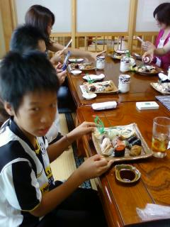 上里で昼食。600円の焼きそばには、たしかに美味しいんだけど、2×2cmのお肉が2切れしか入っていなかった。私はショックから立ち直れず、その先もゲンタが横川まで運転(笑)。そこから富山県魚津市の有磯海SAまで私が交代。この間爆睡のゲンタと岡田は、「能登って割と近いんだね」と発言しおったわ。さて、七尾に18時頃着いたので、駅ビルの1Fにある回転寿司「夢市」へ。
