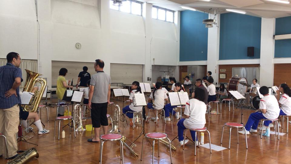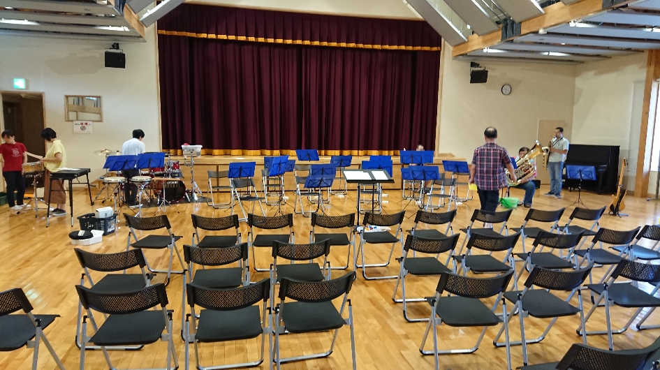 今回は練習&本番で詰め詰めスケジュールのため、初日は朝5時半に出発して、13時から柳田中学校で行われる合同練習に参加。中高一般の合同バンドで、「ホルンだけ大人が不在だから、今回はもしかしたらホルンをお願いするかも」って言われてたら、そのもしかが本当になった(汗)。夜の単独練習にはアルトサックスで参加しました。