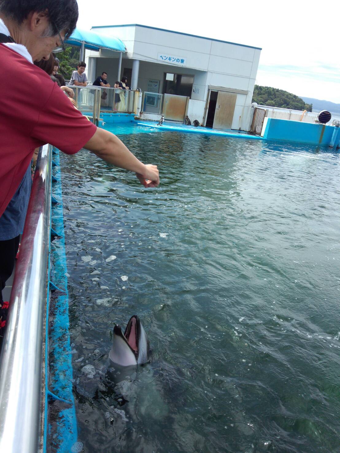 最終日は、リニューアルされた能登島水族館に寄ることに。何年か前に行ったときと、だいぶ雰囲気が変わっていて、お客さんの数も激増してたな。写真はイルカにエサをやるコーナーでの私(笑)。