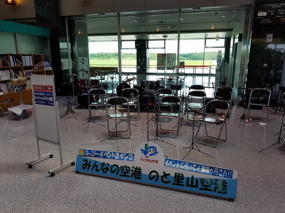 そもそも空港の出発ロビーでコンサートなんかやったら、大事な業務放送が聞こえなかったりするんじゃないかと心配になりますが、全く大丈夫。飛行機が降りてから、次の便が出発準備に入るまでの、まるっきり暇な時間帯に行うのです。能登空港発着の飛行機は、羽田との間で1日2往復のみ!だからコンサートが可能なわけで、羽田では絶対に無理な話(笑)。