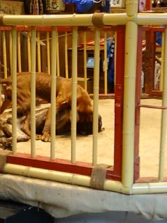 本当の用事は日曜の午後、高松の練習場で偉そうにする、という事ですが、やはりせっかくだから前日から出かけて、高知を観光しました。弦太もだいぶ旅慣れてきたので、東京から浜松町まで、私が京浜東北線、弦太が山手線に乗って競争するという遊びをやりました。「もしもはぐれたら、高知に現地集合な」と言ったら、けっこうびびってました。ANA11時35分発、午後1時には高知に着いたので、とりあえずタクシーで桂浜へ。弦太のクラスに、高知からの転入生が来て、「桂浜へ行け」とだけ教わったらしいから、それに従っただけ。この先は、たいてい地元の運転手さんが親切にガイドしてくださるもので、今回も例外ではありませんでした。闘犬(写真左)は、実際そんなに恐くないし、危険も無いので、お子さま連れでも楽しめます。闘犬センターの外にいると、激しい犬の鳴き声が聞こえて、それでびびって入るのを躊躇する人がいるみたいですが、まったくの誤解。闘犬は鳴いたら負けの競技。って〜ことは、聞こえてる鳴き声は、闘犬とはまったく関係なく、たぶんテープで流してるものです。