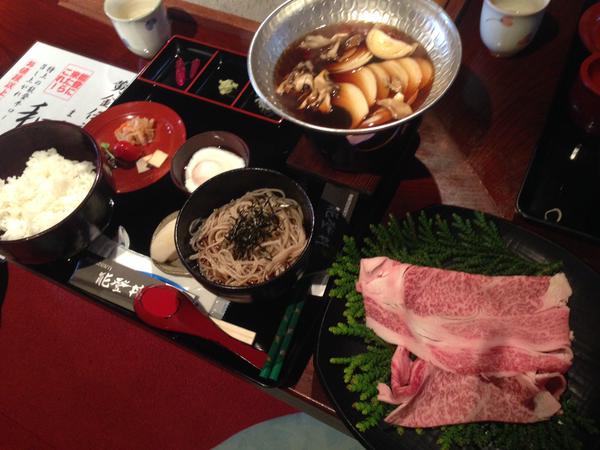 11時に案内役のYぎわ君が来てくれて、いよいよ半島観光出発。昼食場所の「夢一輪館」に向かう。みんな能登蕎麦を中心としたメニューを頼むが、朝食抜きのGんた君だけが「能登和牛丼」(写真)をオーダー。能登まるごと何とか・・・って書いてあって、おそらく能登をまるごと満喫できる・・・みたいな意味だと思うが、ご飯の上に牛1頭まるごと乗せたメニューだと思った人がいて、場は一時混乱した。